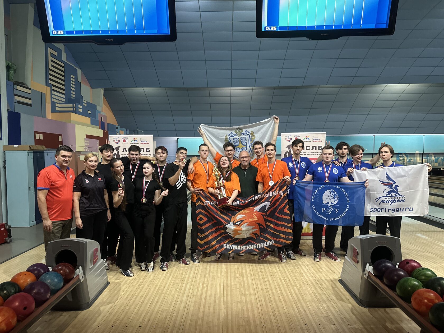 Благодарим всех участников, официальных лиц и руководство ВУЗов, которые нашли возможность и направили свои команды для участия в первом кубке по боулингу среди студентов Москвы. Руководство АССЛБ благодарит спортивных судей Федерации боулинга России за профессиональное сопровождение и обслуживание соревнований.